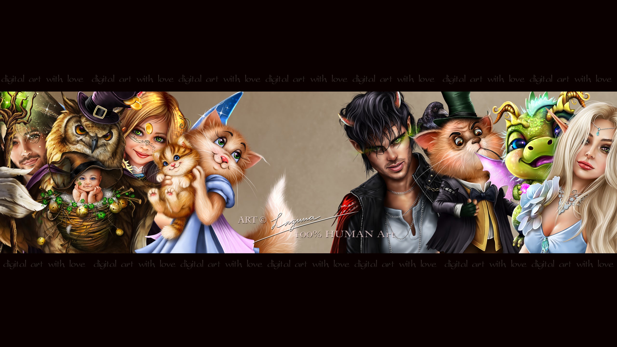 Halloween Cat and Witch Eating Pumpkin