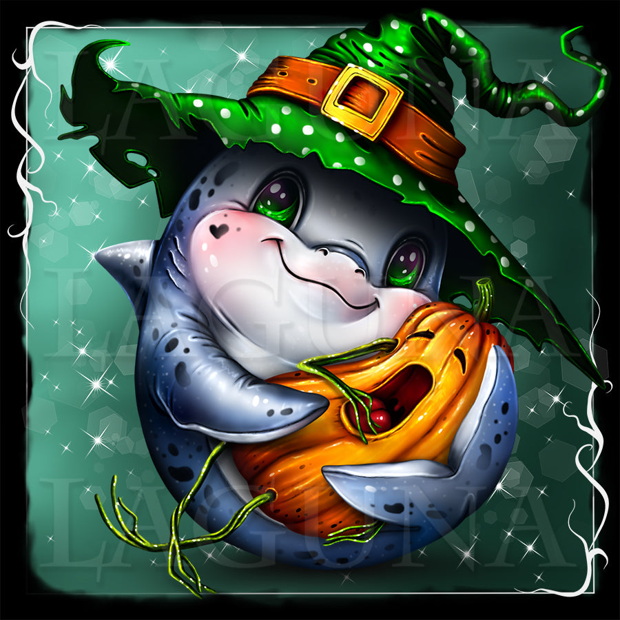 - baby pumpkin is on separate layer too but it is merged with shark's fins